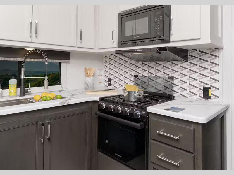 - 21" Furrion® range w/ Piezo ignition and glass stovetop cover