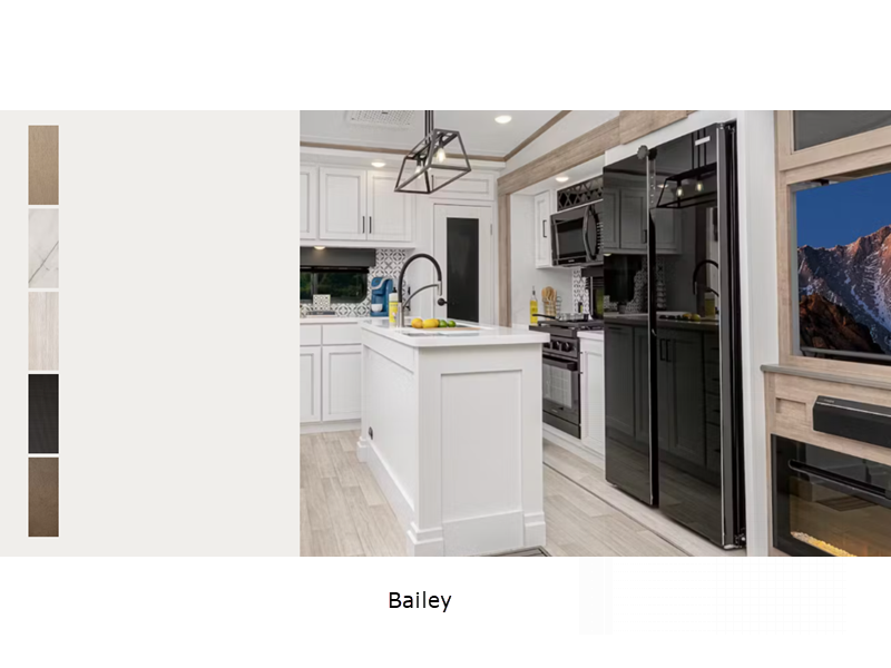 Sleeps 3 Slides 2 Length 28 ft 11 in Ext Width 8 ft Ext Height 12 ft 6 in Interior Color Bailey Hitch Weight 1295 lbs Dry Weight 8143 lbs Cargo Capacity 1857 lbs Fresh Water Capacity 54 gals Grey Water Capacity 60 gals Black Water Capacity 30 gals Tire Size ST225/75R15E Available Beds Queen Refrigerator Type 12V Solar Friendly Refrigerator Size 10 cu ft Cooktop Burners 3 Shower Size 48" x 30" Number of Awnings 1 LP Tank Capacity 30 lbs Water Heater Type On Demand Tankless AC BTU 15000 btu Awning Info 20' Electric w/Gas Strut Arm Axle Count 2 Number of LP Tanks 2 Shower Type Standard Electrical Service 50 amp Similar Floorplans