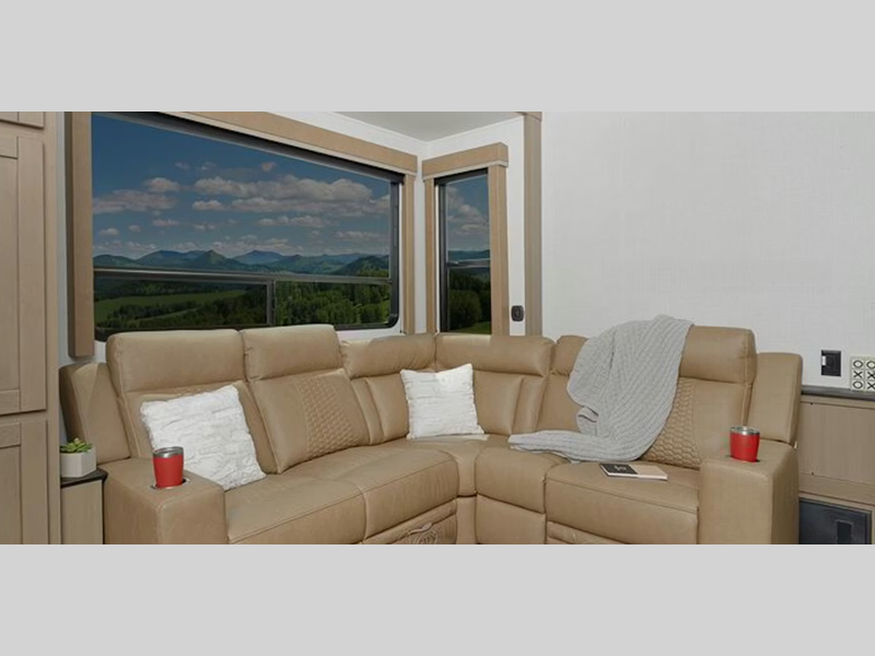 Sleeps 9 Slides 3 Length 37 ft 7 in Ext Height 13 ft 3 in Interior Color Mahogany Hitch Weight 2700 lbs Dry Weight 12976 lbs Cargo Capacity 3724 lbs Fresh Water Capacity 94 gals Grey Water Capacity 88 gals Black Water Capacity 74 gals Tire Size ST235/80R16G Furnace BTU 35000 btu Fuel Capacity 30 gals Number Of Bunks 1 Available Beds King Refrigerator Type 12V Refrigerator Size 16 cu ft Cooktop Burners 3 Number of Awnings 1 Axle Weight 7000 lbs Garage Size 11 ft LP Tank Capacity 30 lbs Water Heater Type Girard On Demand TV Info LR Smart TV Awning Info 13' Electric with Adjustable Arms, Auto Dump, LED Light Strip Axle Count 2 Washer/Dryer Available Yes Number of LP Tanks 2 Shower Type Shower w/Seat Electrical Service 50 amp Similar Floorplans