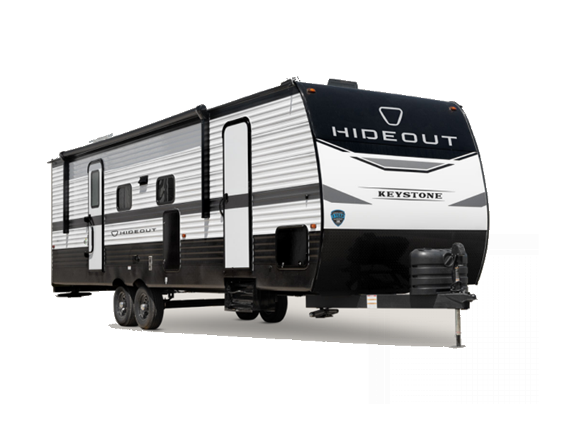 Hideout Max travel trailers by Keystone are made to maximize your camping fun with easy-to-tow designs and smart, comfort-focused floorplans. Whether you’re headed out for a quick weekend or an extended getaway, these rigs make it simple to hit the road and enjoy.