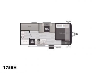 Sleeps 5 Length 20 ft 6 in Ext Height 10 ft 2 in Interior Color Pewter Hitch Weight 360 lbs Dry Weight 3020 lbs Cargo Capacity 1330 lbs Fresh Water Capacity 21 gals Grey Water Capacity 30 gals Black Water Capacity 30 gals Tire Size ST205/75R14D Furnace BTU 20000 btu Number Of Bunks 2 Available Beds Queen Refrigerator Type 12V Refrigerator Size 3.3 cu ft Cooktop Burners 2 Number of Awnings 1 LP Tank Capacity 20 lbs Water Heater Type Tankless Awning Info 10' Power Axle Count 1 Number of LP Tanks 1 Shower Type Standard Similar Travel Trailer Floorplans