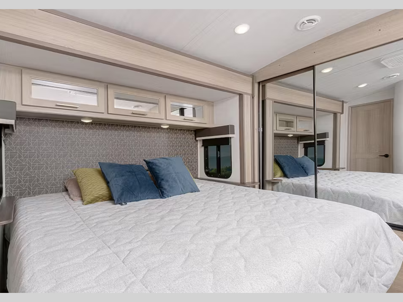 • Queen size bed w/ built-in pet kennel storage (select models)